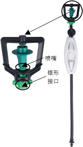 ※此种产品组合包括旋转喷头、微喷毛管、双倒钩接头、重锤、防滴器(可取消),产品已组合完毕,客户购买后可直接投入使用。