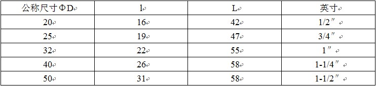 其中“ΦD”表示管件丝口直径,“L”管件长度,“l”表示丝口长度,1.0MPa=10公斤